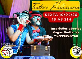 Mais um ano de estudo de nós mesmos, pra mergulhar nas profundezas dos nossos Palhaços em encontros mensais cheios de descobertas. Uma oportunidade para o reencontro com sua essência mais pura e sua criança, um espaço para descobrir e (re)conhecer o nosso Palhaço. O encontro é baseado em tecnicas de antropologia teatral e comicidade e é realizado com música ao vivo.Rodovia Itacaré x Ilhéus - Km35 - Serra Grande