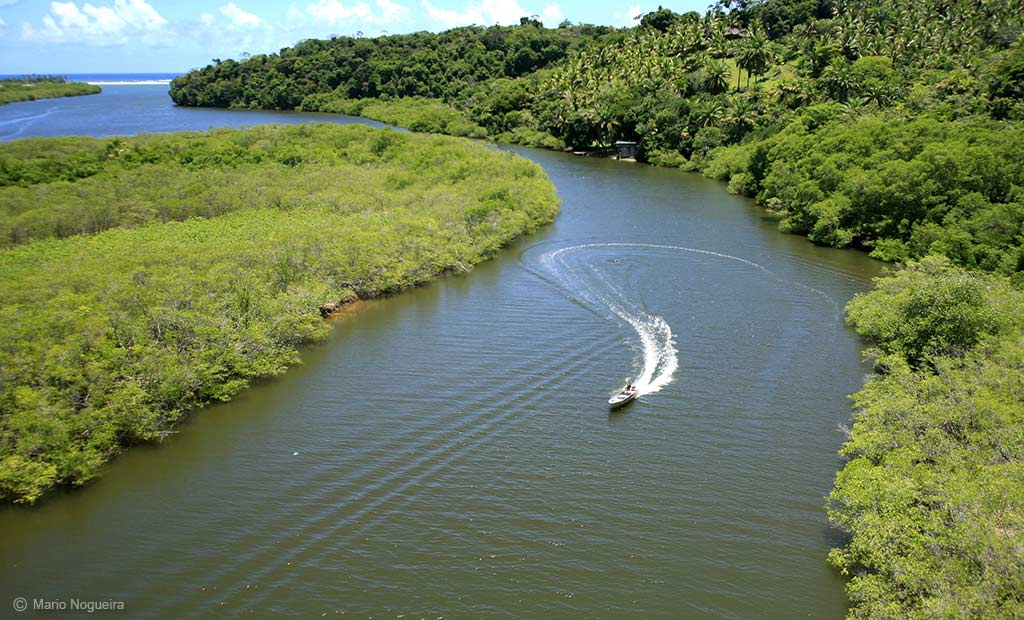 Contas River (Rio de Contas) enchants those who venture upstream by canoe or boat. At sunset the waters reflect the colors that contrast with the living green of the forest, reminiscent of a classic oil painting. The canoe trip that passes through mangroves and canals before arriving to the waterfalls is an unforgettable trip.